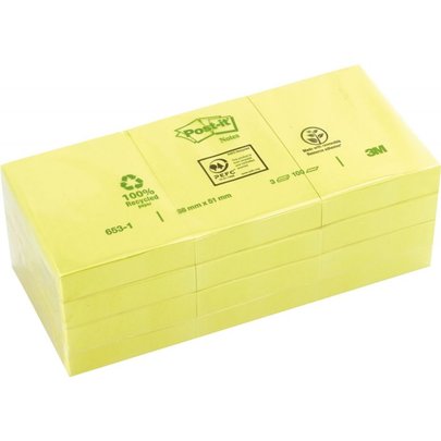 Paquet de 12 blocs 100 feuilles post-it recyclés 38 x 51 mm jaune