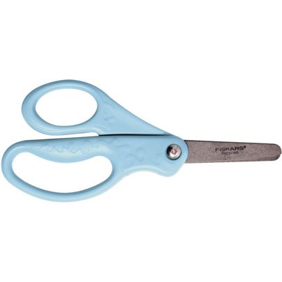 Ciseaux enfants FISKARS recyclés ambidextres 13cm. Anneaux en plastique 100% recyclé, lames en acier inoxydable, anneaux courbés avec la position de l'index : bon positionnement des doigts, grands anneaux : plus de confort pendant la coupe, pointe ronde : pour plus de sécurité.