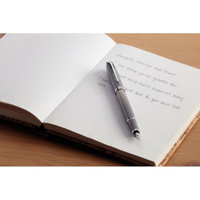 Stylo plume IM Writing Rituals Grey GT bleu. Plume fine. Finition chromée, corps gris dégradé. Cartouche d'encre bleue, livré en coffret cadeau. |