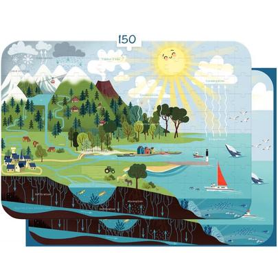 Puzzle 150 pièces, le cycle de l'eau. Contenu : 150 pièces en carton épais, 1 poster grandeur nature et 1 fiche pédagogique. Un puzzle qui combine divertissement et éducation, qui offre aux enfants une représentation des différentes étapes du cycle de l'eau sous toutes ses formes : l'évaporation, la condensation, les précipitations et l'infiltration. L'occasion de rappeler que cette ressource naturelle indispensable à la vie sur terre n'est pas inépuisable. Stimule la réflexion, le sens de l'observation, la curiosité et la concentration. Dimensions : L.56 x l.40 cm. Dès 6 ans.