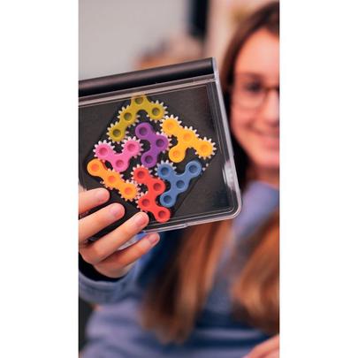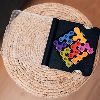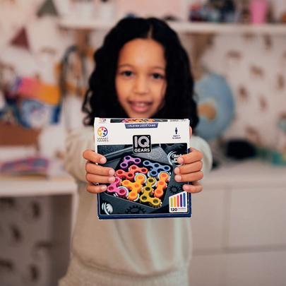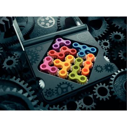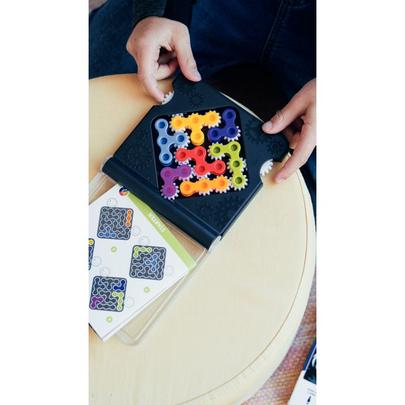 IG gears. Contenu : 1 coffret de jeu avec un couvercle transparent, 7 pièces «?engrenages?», 1 livret de 120 défis et leur solution. But du jeu : Une fois un défi sélectionné, placez tous les engrenages à l’intérieur du plan de jeu. Vérifiez si l’organisation des pièces est correcte en actionnant l’une des deux molettes. Si la seconde molette tourne à son tour, vous avez réussi?! Intérêt pédagogique : Concentration, adaptabilité, logique, et planification A partir de 7 ans 1 joueur