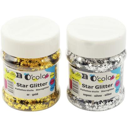 Pot de 65 grammes de paillettes étoiles coloris or. Grandes étoiles métallisées ultralégères aux reflets d'une grande brillance. 100 000 paillettes par pot. Taille 5mm. Conforme au règlement européen 2023/2055