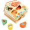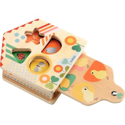 Maison Cachaboom. Trieur de formes en bois brut et coloré sur le thème du jardin avec 4 pièces à encastrer selon formes et couleurs. Quand l'enfant tire sur la languette située sous la maison, les pièces disparaissent d'un coup ! Quand il la repousse, elles ressortent hors du jeu pour recommencer. Développe la coordination œil/main et le sens de l'observation. Favorise la reconnaissance des formes et des couleurs. Dimensions : L.12 x H.15 x ép.4,2 cm. Dès 18 mois. |