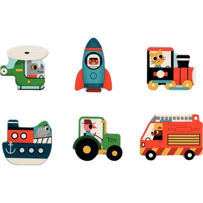 Puzzlo Vroom. Contenu : 1 grand plateau et 22 pièces en bois. Après avoir observé l'illustration, l’enfant s'amuse à replacer les véhicules selon leur lieu de conduite et leur silhouette. Contour des pièces auto correctif : un seul emplacement possible. Développe la concentration, la motricité fine et le vocabulaire des enfants. Dimensions du plateau : L.42 x l.30 x ép.0,8 cm. Dès 2 ans. |
