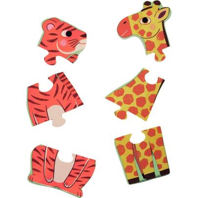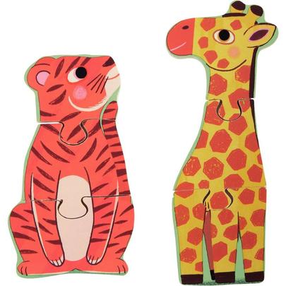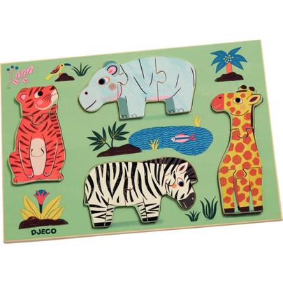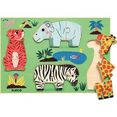 Encastrement en bois Coucou Tigre, 12 pièces. Contenu : 1 plateau et 4 animaux sauvages de 3 pièces chacun en bois à reconstituer et à encastrer. Les pièces débordent du plateau pour faciliter le positionnement et la préhension. Dimensions du plateau : L.29,5 x l.20,5 x ép.1 cm. Épaisseur des pièces : 0,5 cm. Dès 18 mois.