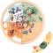 Puzzle d'observation rond recto/verso, le jardin. 2 en 1 : puzzle d’observation et jeu d’association. Contenu : 1 plateau rond contenant un puzzle de 12 pièces en bois, 20 cartes et 1 planche cache-cache en carton épais. Pièces illustrées au recto et au verso. Pour découvrir le cycle des saisons sur une face et le déroulement de la journée sur l’autre face. Le but du jeu est de reconstituer l'un des deux puzzles et de faire tourner les cercles pour faire correspondre les thématiques. Le jeu se poursuit sous forme de "Cherche et trouve". L'enfant place la planche cache-cache sur le puzzle, la tourne à l’aide d’une petite poignée (située sur le plateau) et doit retrouver les 10 éléments cachés sur chaque puzzle idéal pour développer l’acuité visuelle. Un jeu pédagogique qui permet de développer la concentration, le sens de l’observation. Diamètre du plateau : 27 cm. Dès 4 ans. |