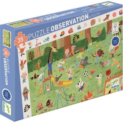 Puzzle d’observation 35 pièces, le square des amis. Puzzle en carton épais, illustration riche en détails et en surprises ! Après avoir reconstitué le puzzle, l'enfant s'amuse à retrouver dans l’image les éléments de la frise. Développe le sens de l'observation. Livré avec un poster. Dimensions du puzzle : L.61 x l.38 x ép.0,2 cm. Dès 3 ans.