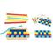 Tissacolor. Ce jeu original propose des activités de motricité fine et de décodage-codage de fiches. Développe la mobilité du poignet, la dextérité des doigts et prépare aux gestes d'écriture. Contenu : 1 livret pédagogique, 12 fiches recto verso soit 24 activités, 1 cadre en bois avec 7 bandes élastiques fixes (bleu marine), 9 bandes de tissu (L.29,5 x l.2,5 cm) de 3 couleurs (rouge, bleu, jaune). Dimensions du cadre : L.24,3 x l.14,5 x ép.2,5 cm. Dès 4 ans. |