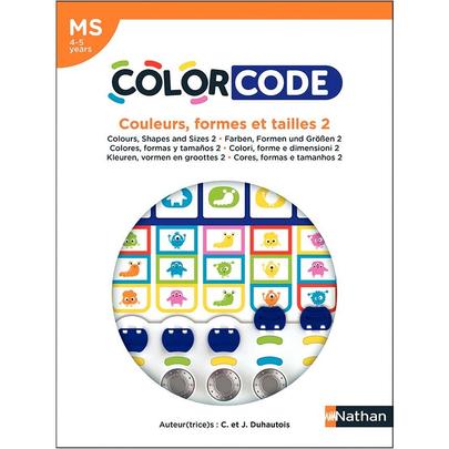 COLORCODE couleurs, formes et tailles 2. COLORCODE est un nouveau principe de jeu auto correctif pour travailler à son rythme avec une tablette au design unique pour créer un effet de surprise ! Les activités fonctionnent toutes avec un code couleur pour la réponse de l’élève et la solution, ce qui rend COLORCODE très simple d’utilisation et accessible aux plus petits. A chaque nouvelle activité, il faut trouver la combinaison de couleurs gagnante, comme pour l’ouverture d’un coffre-fort ! À utiliser avec les supports COLORCODE vendus séparément. Niveau : MS. COLORCODE couleurs, formes et tailles 2 consiste à reconnaître un animal, un végétal ou un objet selon 3 propriétés : couleur, forme et taille. La pochette contient 1 livret pédagogique et 12 fiches cartonnées 19,8 x 26,5 cm. Dès 4 ans.