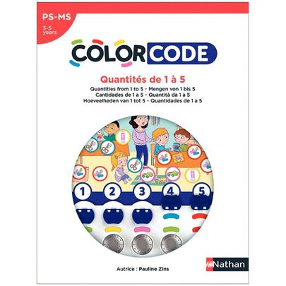 COLORCODE quantités de 1 à 5. COLORCODE est un nouveau principe de jeu auto correctif pour travailler à son rythme avec une tablette au design unique pour créer un effet de surprise ! Les activités fonctionnent toutes avec un code couleur pour la réponse de l’élève et la solution, ce qui rend COLORCODE très simple d’utilisation et accessible aux plus petits. A chaque nouvelle activité, il faut trouver la combinaison de couleurs gagnante, comme pour l’ouverture d’un coffre-fort ! À utiliser avec les supports COLORCODE vendus séparément. Niveaux : PS-MS. COLORCODE quantités de 1 à 5 consiste à dénombrer une quantité d'objets de 1 à 5 dans une scène de la vie quotidienne. La pochette contient 1 livret pédagogique et 12 fiches cartonnées 19,8 x 26,5 cm. Dès 3 ans.