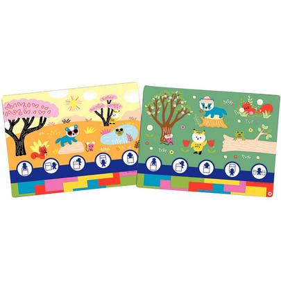 COLORCODE repérage spatial. COLORCODE est un nouveau principe de jeu auto correctif pour travailler à son rythme avec une tablette au design unique pour créer un effet de surprise ! Les activités fonctionnent toutes avec un code couleur pour la réponse de l’élève et la solution, ce qui rend COLORCODE très simple d’utilisation et accessible aux plus petits. A chaque nouvelle activité, il faut trouver la combinaison de couleurs gagnante, comme pour l’ouverture d’un coffre-fort ! À utiliser avec les supports COLORCODE vendus séparément. Niveaux : MS-GS. COLORCODE repérage spatial consiste à repérer les 5 mêmes animaux dans un environnement naturel et identifier la position spatiale de chacun : sur, sous, à côté, entre, devant, derrière, dans. La pochette contient 1 livret pédagogique et 12 fiches cartonnées 19,8 x 26,5 cm. Dès 4 ans. |