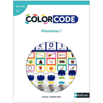 COLORCODE phonèmes 1. COLORCODE est un nouveau principe de jeu auto correctif pour travailler à son rythme avec une tablette au design unique pour créer un effet de surprise ! Les activités fonctionnent toutes avec un code couleur pour la réponse de l’élève et la solution, ce qui rend COLORCODE très simple d’utilisation et accessible aux plus petits. A chaque nouvelle activité, il faut trouver la combinaison de couleurs gagnante, comme pour l’ouverture d’un coffre-fort ! À utiliser avec les supports COLORCODE vendus séparément. Niveaux : MS-GS. COLORCODE phonèmes 1 consiste à développer des compétences d’observation, d’écoute, et s’entraîner à discriminer les sons : localiser un phonème au début, au milieu, en fin de mot. Sons étudiés : voyelles, consonnes longues et occlusives. La pochette contient 1 livret pédagogique et 12 fiches cartonnées 19,8 x 26,5 cm. Dès 4 ans.