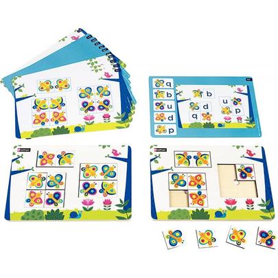 Atelier LudiTab, lettres miroirs. Cet atelier propose 2 puzzles à solutions multiples. Accompagnés de fiches d'activités, pour développer la discrimination visuelle fine et entrainer à la reconnaissance de lettres ou de groupes de lettres visuellement proches. Niveau : GS. Atelier pour 2 enfants. Contenu : 1 livret pédagogique, 12 fiches d'activités recto verso soit 24 modèles, 2 puzzles identiques comprenant chacun 10 pièces et 1 socle en bois verni (L.26 x l.18 x ép.1 cm). Dès 5 ans. |