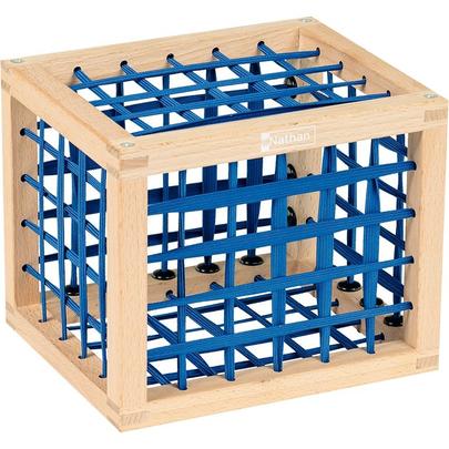 Sors-moi de là ! La cage à élastiques. Cage d'exploration sensorielle livrée vide, à compléter des codes 55755 et 55756 vendus séparément. Structure en bois verni avec des élastiques bleus formant un quadrillage sur les 4 faces. A l'aide, qui arrivera à libérer les objets de la cage à élastiques ? Ce jeu de manipulation original propose des activités ludiques de motricité fine, de reconnaissance des couleurs, des chiffres et des premiers nombres. Dimensions : L.18 x l.14,8 x H.14,8 cm. Dès 3 ans.