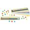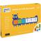 Atelier B-A BA des motifs. Pour 2 enfants. Cet atelier propose des activités variées autour des motifs afin de renforcer les compétences mathématiques. Les enfants construisent les motifs présentés sur les fiches avec les cubes. Ils repèrent le motif de base et peuvent s’autocorriger, en autonomie. L’atelier permet de travailler les motifs répétitifs (séries verte, rose, bleue) et évolutifs (série jaune). 24 fiches recto verso (soit 48 activités) organisées en 4 séries de 6 fiches de difficulté progressive. Le recto de chaque fiche sert de correction à l’activité du verso. Au recto : reproduction terme à terme. Au verso : 3 types de situations-problèmes à résoudre. L’enfant peut valider sa réponse par simple superposition sur la fiche. La boîte contient : 24 fiches recto verso soit 48 activités (format déplié 43 x 9 cm), 120 SmartCubes en plastique de 4 couleurs (2 x 2 x 2,2 cm), 1 livret pédagogique. Dès 4 ans. |