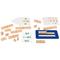 Atelier Debloki. Debloki - Résolution de problèmes est conçu pour aider les élèves à résoudre des problèmes arithmétiques en leur faisant manipuler matériellement les nombres des énoncés. Ils comprennent les interactions entre les nombres et progressent vers l’abstraction. L’enseignant ou l’enfant lit de haut en bas, étape par étape, l’énoncé du problème illustré sur la fiche. L’enfant place les blocs des nombres en jeu dans le plateau, puis il lit la réponse sur la droite numérique. La chronologie des énoncés, la manipulation de la valeur cardinale des nombres et la verbalisation des procédures sont au cœur de la démarche de recherche. Le matériel offre différentes modalités de travail : en groupes de 6 à 8 élèves, en petits groupes collaboratifs, en individuel. 40 fiches d’activités organisées en 8 séries de 5 fiches. Chaque série propose un type de problèmes : composition de deux collections, ajout, retrait, produit, partage. La boîte contient : 40 fiches d’activités recto verso (20 x 13 cm), 27 blocs nombres en bois (L/l/H : 2 à 20 x 2 x 2 cm), 1 plateau en bois rainuré comprenant 2 lignes numériques (27 x 16 cm), 1 livret pédagogique. Dès 5 ans. |