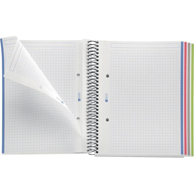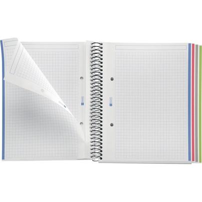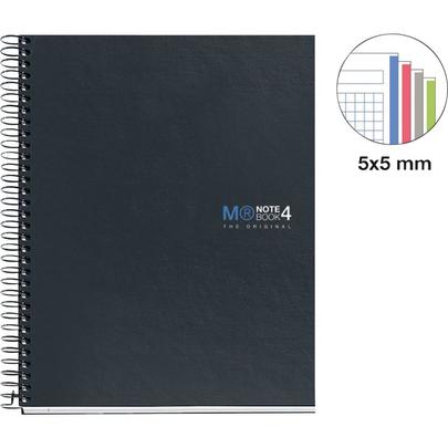 NOTEBOOK MIQUELRIUS format A5, 160 feuilles 70g, quadrillé 5x5, couverture carton rigide grafit. Cahier à reliure intégrale NOTEBOOK 4 collection THE ORIGINAL. Couverture en carton rigide plastifié coloris gris grafit. Papier blanc extra opaque 70g. 320 pages microperforées détachables et perforées. Réglure, en-tête et bords de 4 couleurs assorties.