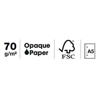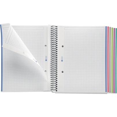 NOTEBOOK MIQUELRIUS format A5, 150 feuilles 70g, quadrillé 5x5, couverture PP noir. Cahier à reliure intégrale NOTEBOOK 6 collection THE ORIGINAL. Couverture en polypropylène opaque noir 8/10ème, souple et résistant à l'usure. Papier blanc extra opaque 70g. 300 pages microperforées détachables et perforées. Réglure, en-tête et bords de 6 couleurs assorties. |
