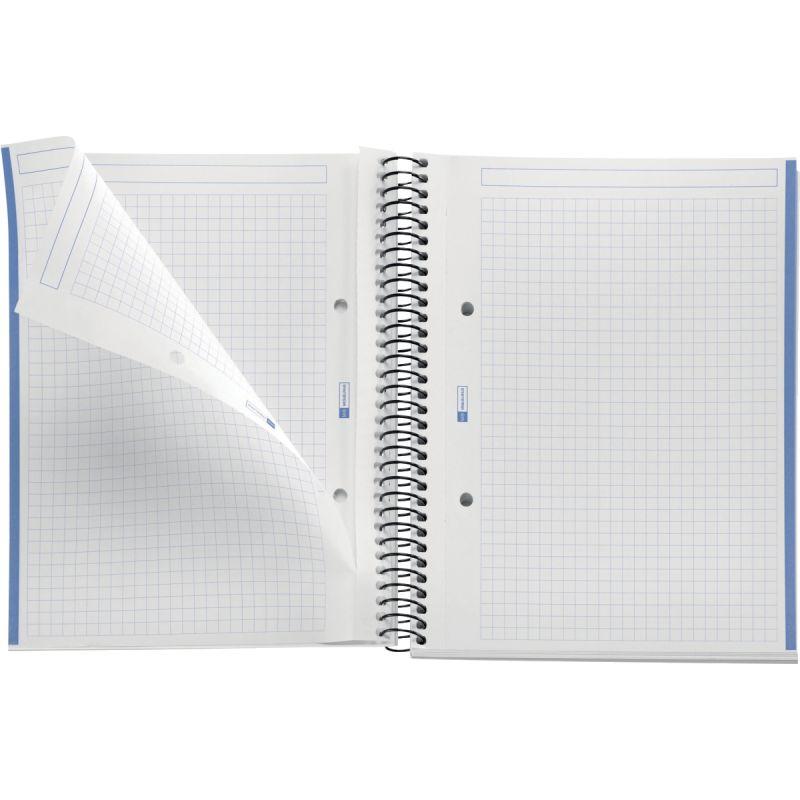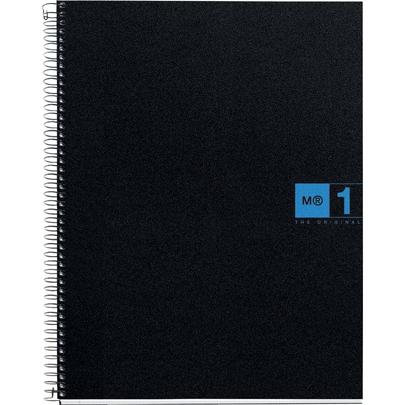 NOTEBOOK MIQUELRIUS format A5, 80 feuilles 70g, quadrillé 5x5, couverture PP noir, intérieur bleu. Cahier à reliure intégrale NOTEBOOK 1 collection THE ORIGINAL. Couverture en polypropylène opaque noir 8/10ème, souple et résistant à l'usure. Papier blanc extra opaque 70g. 160 pages microperforées détachables et perforées. Réglure, en-tête et bords coloris bleu.