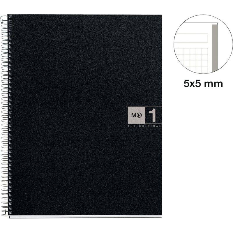 NOTEBOOK MIQUELRIUS format A4, 80 feuilles 70g, quadrillé 5x5, couverture PP noir, intérieur gris