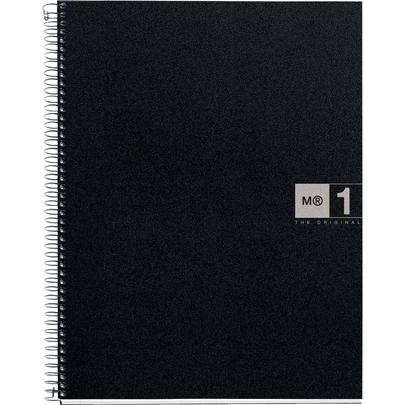 NOTEBOOK MIQUELRIUS format A4, 80 feuilles 70g, quadrillé 5x5, couverture PP noir, intérieur gris. Cahier à reliure intégrale NOTEBOOK 1 collection THE ORIGINAL. Couverture en polypropylène opaque noir 8/10ème, souple et résistant à l'usure. Papier blanc extra opaque 70g. 160 pages microperforées détachables et perforées 4 trous. Réglure, en-tête et bords coloris gris.