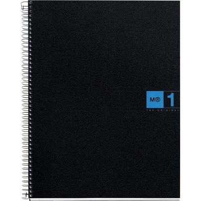 NOTEBOOK MIQUELRIUS format A4, 80 feuilles 70g, quadrillé 5x5, couverture PP noir, intérieur bleu. Cahier à reliure intégrale NOTEBOOK 1 collection THE ORIGINAL. Couverture en polypropylène opaque noir 8/10ème, souple et résistant à l'usure. Papier blanc extra opaque 70g. 160 pages microperforées détachables et perforées 4 trous. Réglure, en-tête et bords coloris bleu.