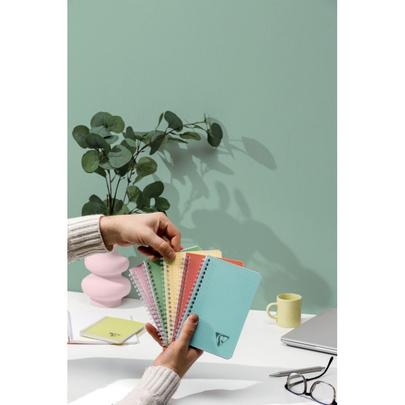 Cahier à reliure intégrale 180 pages LINICOLOR ESSENCE, format A4, quadrillé 5x5. Papier vélin velouté 90g. Couverture en polypropylène rigide rainuré translucide. Reliure intégrale blanche. 5 coloris naturels assortis : bleu lagon, vert sauge, jaune paille, rouge garance, rose pétale.