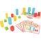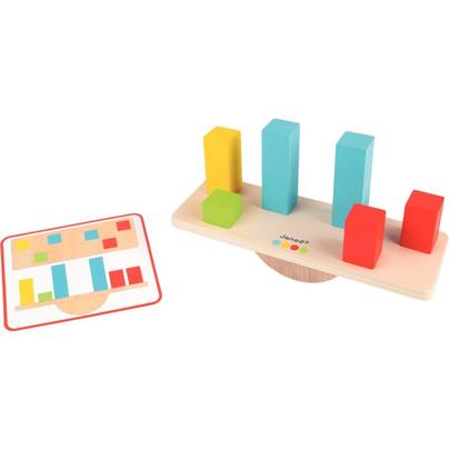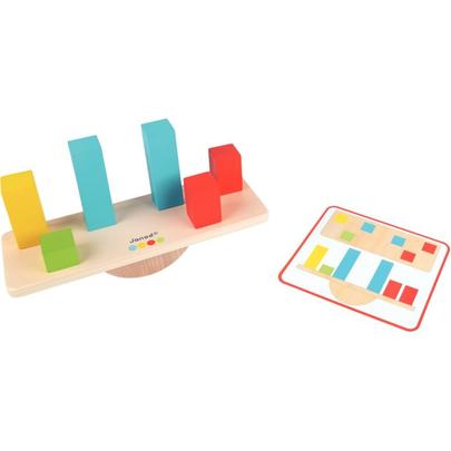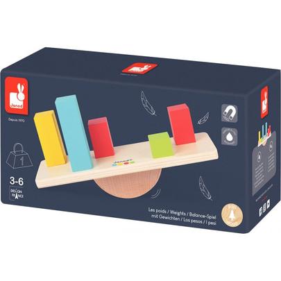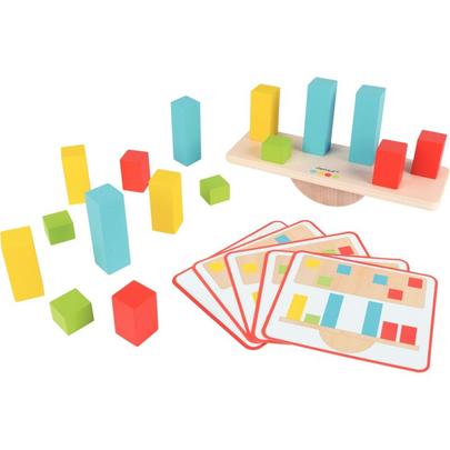 Les poids. Contenu du Jeu : Un socle en forme de bascule (23x8 cm) magnétique, 16 blocs de différentes tailles et couleurs, 8 fiches modèles. But du Jeu : cette balance magnétique permettra à l’enfant de comparer le poids des éléments de manière ludique et reproduire les dessins représentés sur les modèles pour équilibrer la balance. Intérêts Pédagogiques : Patience et concentration A partir de 3 ans