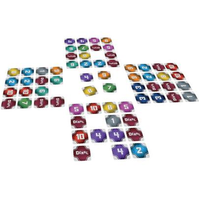Dékal. Contenu : 100 cartes, 1 pion, la règle du jeu But du jeu : A chaque tour les joueurs choisissent n’importe quelle carte face cachée de leur jeu, et simultanément, la jouent face visible au centre de le table. Chacun choisit ensuite l’une des cartes révélées au centre de la table et l’insère dans son jeu par l’extérieur en poussant une ligne ou une colonne. La partie se termine quand toutes les cartes sont visibles. Le joueur avec le score le moins élevé remporte la partie. A partir de 7 ans De 2 à 6 joueurs Durée de la partie : 15 min