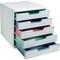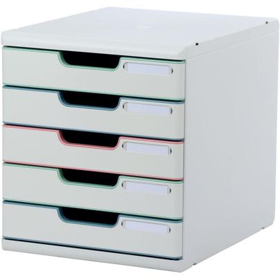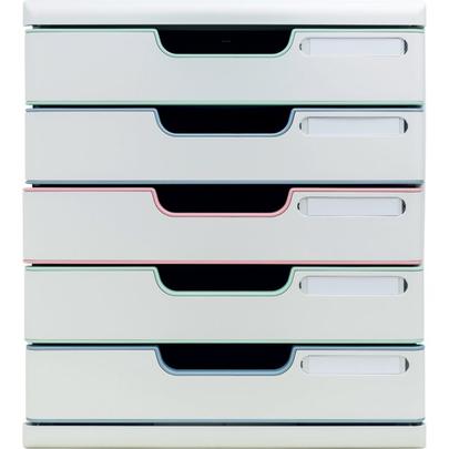 Module 5 tiroirs Modulo Blanc / Autentik. Système de classement élégant et fonctionnel composé de 5 tiroirs pour classer des documents en format A4 et A4+, des pochettes à élastiques 24x32cm, des enveloppes grand format. Les modulos sont juxtaposables et superposables grâce aux clips de fixation inclus.
