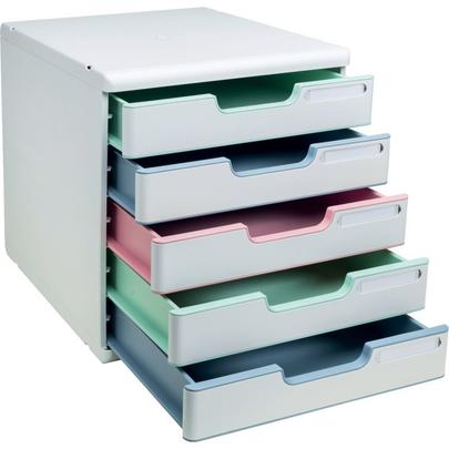 Module 5 tiroirs Modulo Blanc / Autentik. Système de classement élégant et fonctionnel composé de 5 tiroirs pour classer des documents en format A4 et A4+, des pochettes à élastiques 24x32cm, des enveloppes grand format. Les modulos sont juxtaposables et superposables grâce aux clips de fixation inclus. |