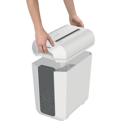 Destructeur individuel LX65 coupe croisée 10 feuilles blanc. Détruit 10 feuilles, coupe croisée. Corbeille: 22 L. Fenêtre de visualisation du niveau de remplissage de la corbeille. Cycle de fonctionnement: 6 min. Démarrage/arrêt automatique électronique. Technologie SafeSense: le destructeur s'arrête dès qu'une main s'approche de la fente d'insertion. Garantie 2 ans (+1 an si inscription) sur la machine et 3 ans sur les cylindres de coupe.